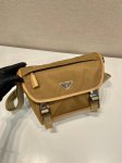 / 新款邮差包2Vd066小号 这款邮差包由Re-Nylon再生尼龙面料设计,配撞色小牛皮,翻盖和按锁开合,三个外部拉链式口袋,内部拉链式口袋和贴袋。容量空间大,又