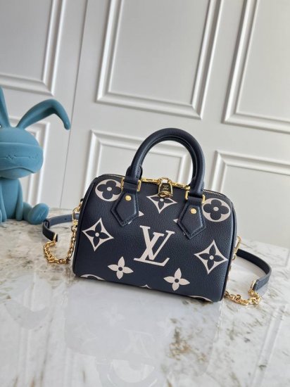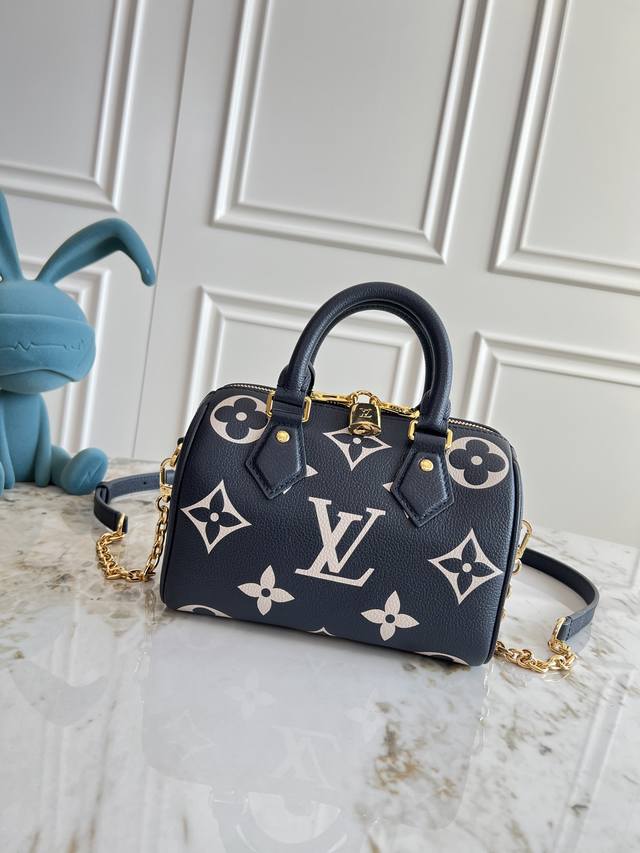 独家背景 头层芯片版 M46875冰白粉 M58953黑色 M46883冰白蓝 46575大象灰 M46397米白粉印 M47136粉M47048藏蓝M14207芋泥 由双色 Monogram Empreinte 皮革制成,饰有 Lv 标识与 Monogram 花卉图案,此款 Speedy BandoulièRe 20 手袋堪称摩登经典之作。设计灵感源于 1930 年代的 Speedy 旅行箱系列,还原最初的造型与铰接式手柄。配有皮革金属链包带,便于肩背和斜挎。