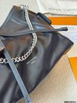 柔软羊皮革呈现时尚微皱效果,并为深邃背景搭配抛光金属件与慵懒构型,成就昼夜场合佳选。可拆卸肩带与链带实现多种造型可能。