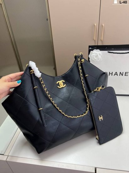 / Chanel香奈儿 25S 金扣托特包 菱格纹设计皮穿链肩带 Hobo包手提单肩包 L-40尺寸30×28折叠盒
