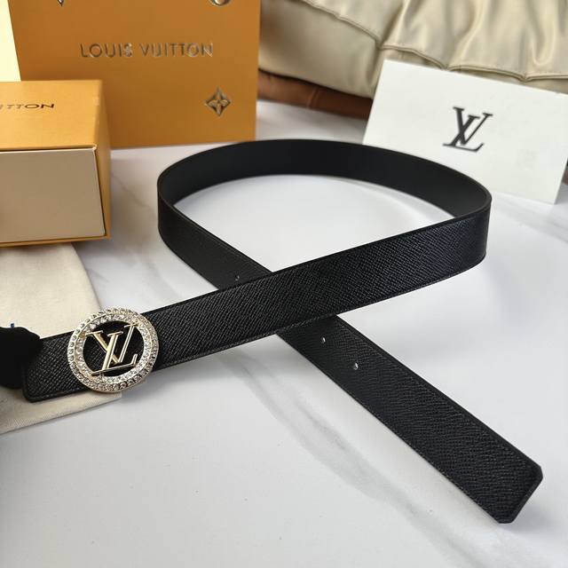 原版包裝 L0Uis Vuitt0N 驢家原單腰帶 寬度35毫米 腰帶採用一面頭層手掌紋皮內襯一面進口小牛皮底 搭配圓形鑽扣裝飾五金 可雙面佩戴 經久耐用 時尚
