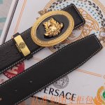 宽度4.0Cm Versace范思哲光亮开边珠平纹带身双面头层 此款腰带配有醒目的美杜莎头像搭扣,可为任何造型增添几分立体雅致效果。