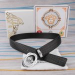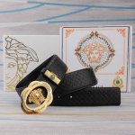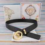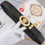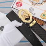 特 范思哲 宽4.0Cm 新款 皮革腰带,以经典 Versace 美杜莎头像装饰,皮带配有闪亮双色五金,增添造型魅力。完美时尚必备单品。