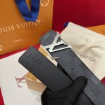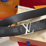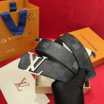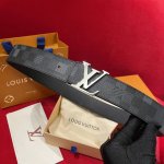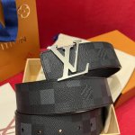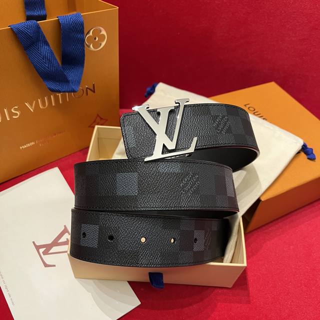 L V New 宽度4Cm 皮带面采用定制帆布面料 纯黑色原厂小牛皮底 手感极佳 搭配与皮带同色调的精致搭扣 双面用