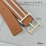/ HermèS 爱马仕 新款针扣皮带 原单品质 原版Esom小牛皮搭配帆布材质 土黄色 38Mm宽 配官网亮金 亮银扣 可翻转五金两面可用