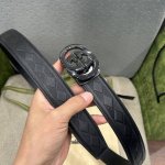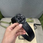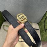 特 Gucci、3.5宽Belt With Interlocking G Detail 时尚腰带 针扣设计 平纹牛皮底