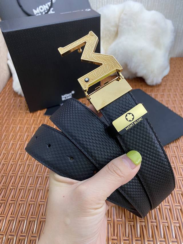 montblanc万宝龙 宽3.5Cm 采用头层牛皮 精品针式扣头 自由裁剪商务休闲皮带