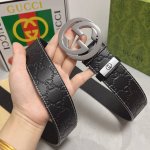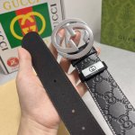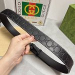 特 双面经典热压款 3.7双面腰带,一侧为Gucci Signature皮革,反面一侧为单色皮革。配以互扣式双G带扣