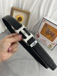 Hermes爱马仕 男士单面皮腰带3.8Mm采用专柜最荔枝皮质,搭配双H珐琅磨胶 银色扣