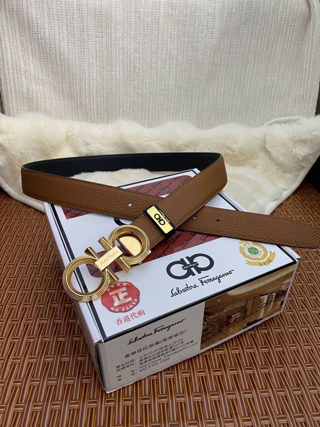特 Ferragamo.菲拉格慕 新款全套包装 宽度3.5Cm 高级定制款男士皮带 双面进口牛皮 可双面使用 自行选择搭配 真材实料 很有质感...