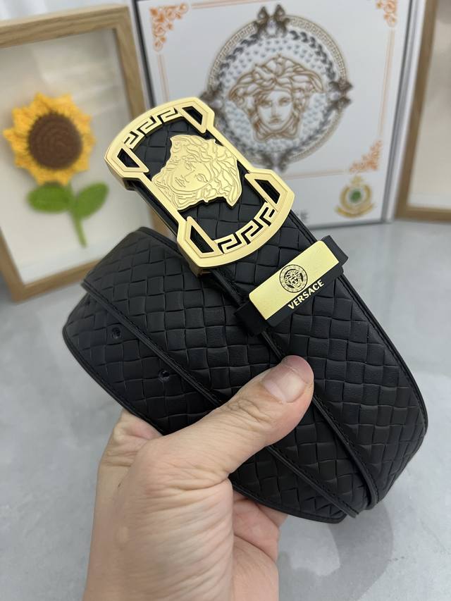 特 范思哲秘原单高档品质专柜官网同步支持Nfc感应宽度3.9精美镶钻扣头意大利双面进口头层小牛皮原版美人头花纹手感极佳...