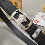 宽度3.8Cm Versace 范思哲 此款个性腰带由小牛皮制成,饰有链条印花,并配有标志性美杜莎五金搭扣配件。