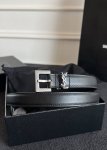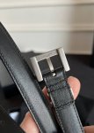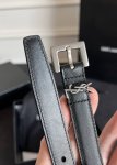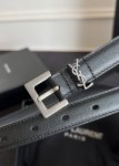 特 宽度3.0Cm Saint Laurent圣罗兰ysl Monogram 荔枝纹压印皮革方扣窄腰带黑色女款