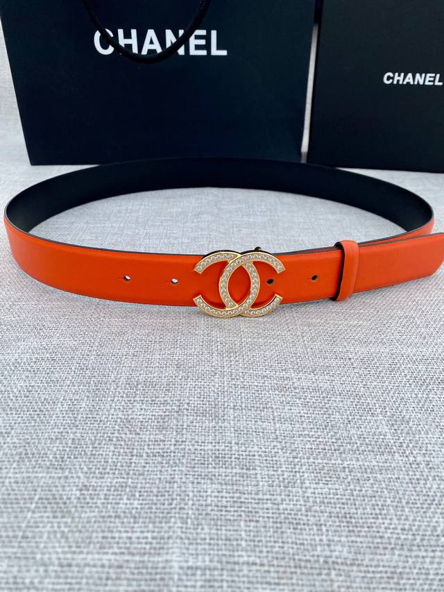 特 宽度3.0Cm Chanel 香奈儿 女士腰带皮带新款柔软的内衬进口小牛皮搭配精品镶钻钢扣金 银色扣。