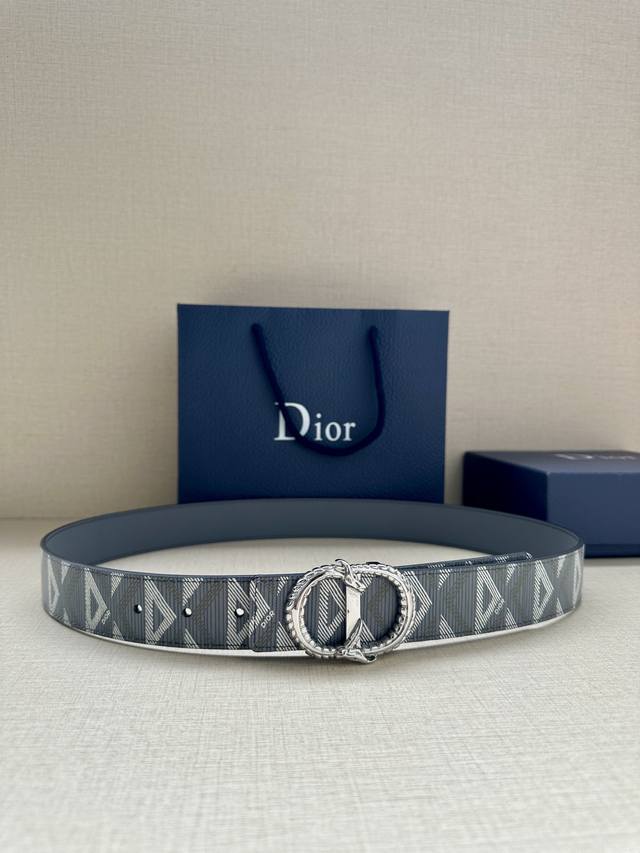 宽度3.5Cm 此款双面设计,一面采用黑色 龙腾Cd Diamond 图案帆布,另一面采用同色调光滑牛皮革。Cd Diamond 图案由马克 博昂 Marc B