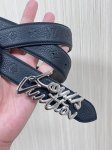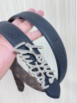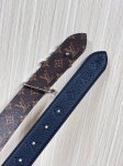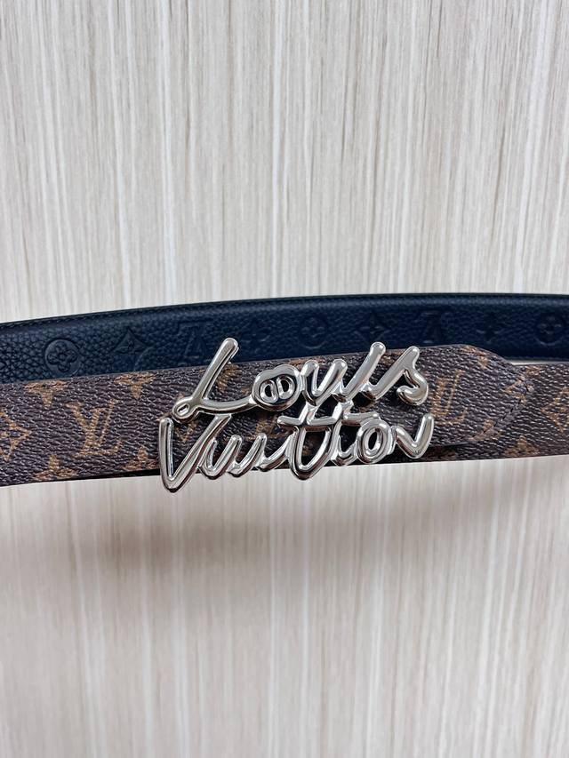 当季新款,腰带取材雍容牛皮革和 Monogram 帆布,便于随心切换两 式风尚。路易威登手写体标识化身为宽幅金属搭扣,于中央点亮视线 焦点,可为休闲和正式造型注入典雅气息,3.0宽铁丝扣,黑色荔枝纹小牛皮压花,一尖一方。