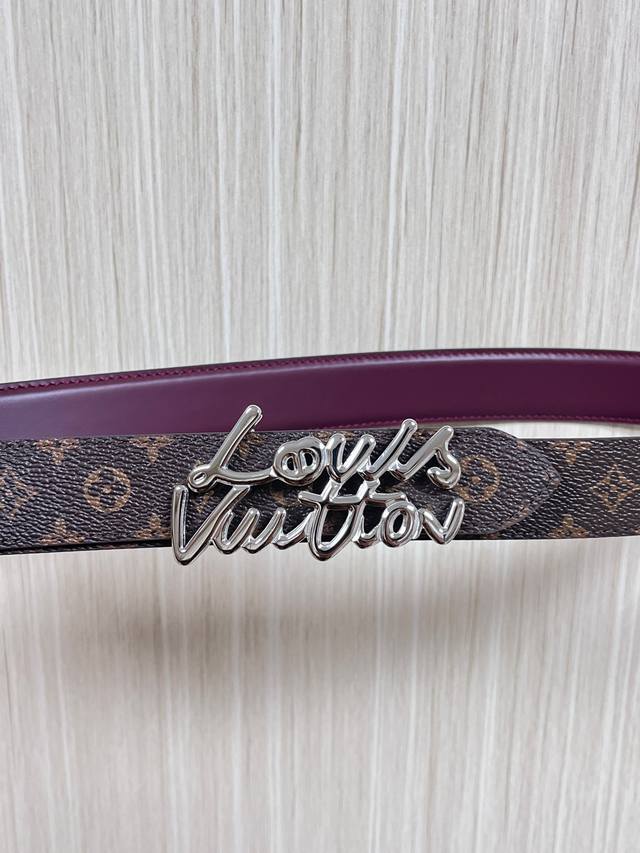 当季新款,腰带取材雍容牛皮革和 Monogram 帆布,便于随心切换两 式风尚。路易威登手写体标识化身为宽幅金属搭扣,于中央点亮视线 焦点,可为休闲和正式造型注入典雅气息,3.0宽,酒红小牛皮,一尖一方。