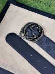 双面腰带,一侧为Gg Supreme帆布,反面一侧为树膏牛皮配以互扣式双G带扣。 乌木色Gg Supreme帆布,反面为原版树膏牛皮 金 黑...