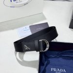 特 Prada 普拉达 专柜最新款 这款腰带设计简约而不失精美 金属搭扣呈现标志性的三角形徽标轮廓 彰显品牌格调...
