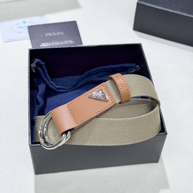 / 普拉达工装风格棉质梭织腰带、休闲风格;配有双D型搭扣。松弛有度、3.5Cm