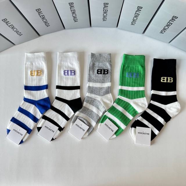/ 特 配专柜包装 Balenciaga 巴黎世家 新款中长款堆堆袜袜子!一盒五双,专柜同步筒袜袜子,大牌出街,潮人必备超好搭