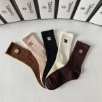 配包装 一盒5双 Chanel 香奈儿经典中筒袜子纯棉材质、经典双C图案Logo,专柜同步袜子大牌出街!
