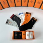 / 特 配专柜包装 Hermes 爱马仕 新款刺绣中长款堆堆袜袜子!一盒五双,专柜同步筒袜袜子,大牌出街,潮人必备超好搭