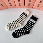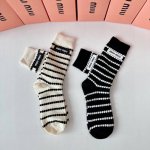 / 特 配专柜包装 Miumiu 缪缪 新款条纹羊绒堆堆袜袜子!一盒两双,专柜同步款袜子,大牌出街,潮人必备超好搭