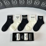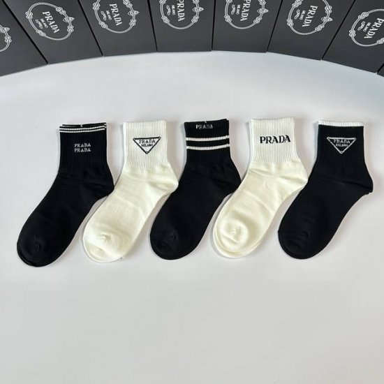 特 配专柜包装 Prada 普拉达 新款中长款堆堆袜袜子!一盒五双,专柜同步筒袜袜子,大牌出街,潮人必备超好搭。
