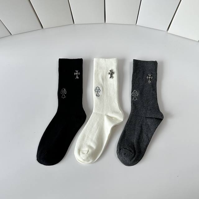 / 特 配包装 克罗心 新款经典中长款饰品袜堆堆袜袜子!一盒三双, 专柜同步筒款袜子,大牌出街,潮人必备超好搭。