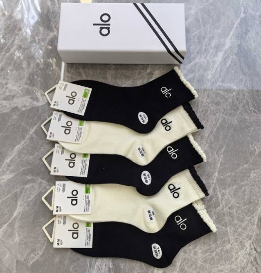 / 特 配包装 Alo 新款刺绣中长筒款堆堆袜袜子!一盒五双, 专柜同步筒款袜子,大牌出街,潮人必备超好搭