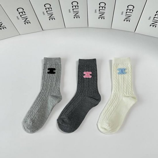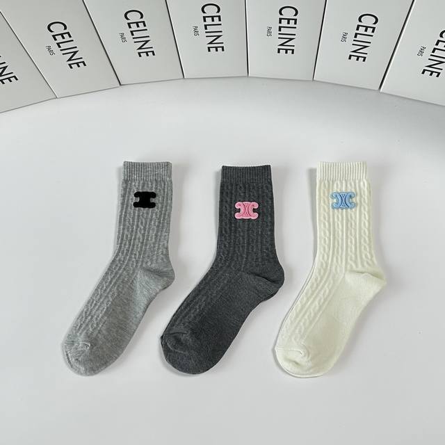 / 特 配包装 Celine 赛琳 新款经典中长款饰品袜堆堆袜袜子!一盒三双, 专柜同步筒款袜子,大牌出街,潮人必备超好搭。
