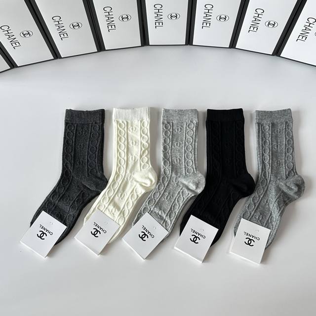 / 特 配包装 Chanel 香奈儿 新款羊绒中长款堆堆袜袜子!一盒五双, 专柜同步筒款袜子,大牌出街,潮人必备超好搭