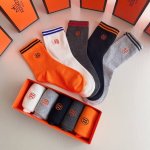 / 特 配包装 HermèS 爱马仕 新款刺绣经典中长款堆堆袜袜子!一盒五双, 专柜同步筒袜袜子,大牌出街,潮人必备超好搭。