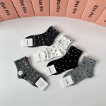 / 特 配包装 Miumiu 缪缪 新款中长款堆堆袜袜子!一盒五双, 专柜同步筒款袜子,大牌出街,潮人必备超好搭