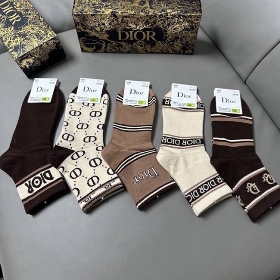 / 特 Dior 迪奥D家新品女款袜子 一盒五双 提花品牌Logo,简单大气,实物超漂亮,经超火爆小单品,大牌出街,潮人必备超好搭