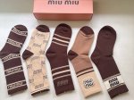 特 Miumiu 缪缪新品女款长筒袜子 一盒五双 提花经典Miumiu字母,透气柔软舒适,超火爆小单品,大牌出街,潮人必备超好搭