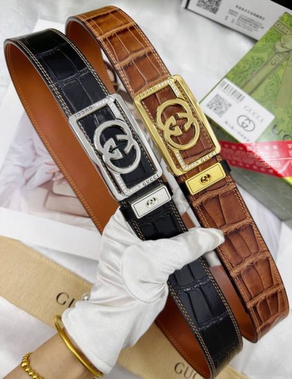 特 Gucci男士自动腰带- 宽度35Mm 316精品钢扣 永不掉色 精工打造 手感柔软 可以裁剪