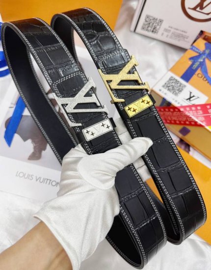 皮带:Lv..路易..威登顶级复刻. 腰带:原单品质百分百头层牛皮,保证真皮。雕花工艺.真空电镀.永不掉色.24K纯钢扣头层鳄鱼皮纹路双面可用专柜同等质量, 送人自用首选 包装: 请认准如图专柜包装,赠送打孔器,银联发票,宽度40Mm