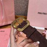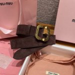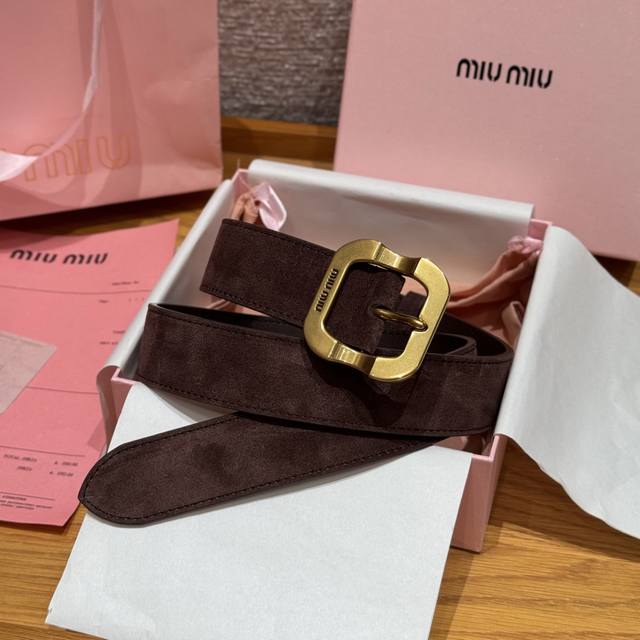 谬家新款女士腰带 这款腰带是提升造型品味的理想之选,醒目的刻字五金徽标配方形针扣,平纹细腻的小牛皮,非常时尚百搭,适合任何场合提升品味首选. 宽度3.5Cm .
