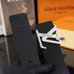 特 4.0宽 Lv Broken 双面腰带令 Lv 字母搭扣呈现锯齿状边缘,与腰带的边染色彩互为映衬。Monogram 图案帆布和牛皮革提供两式格调。