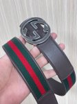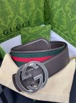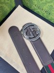 / 这款双面腰带采用红绿织带与深棕色牛皮革,搭配可拆卸互扣式双G搭扣,为2025秋冬系列再添新作。4.0宽包边接皮挂扣