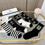 / 配包装 一盒五双 Chanel 香奈儿高品质超级爆款网红袜子小香家官网同步字母中筒袜,Ins明星网红推荐火爆至极纯棉材质,轻薄柔软透气,四季通用,欧美大牌街头必