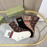 / 配包装 一盒五双 Gucci 古奇网红爆款出货~G家新品体香袜专柜对版字母袜子纯棉材质织造,超级柔软舒适,罗口经典金线双G,超级抢眼,Ins超火爆小单品,大牌出
