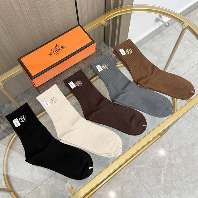 / 配包装 一盒五双 Hermer 爱马仕经典中筒羊绒袜子羊绒面料,专柜同步上新,袜身提花H品牌字母全称,罗口处刺绣H标志,特别吸睛,纯棉材质,上脚超柔软舒适,超火