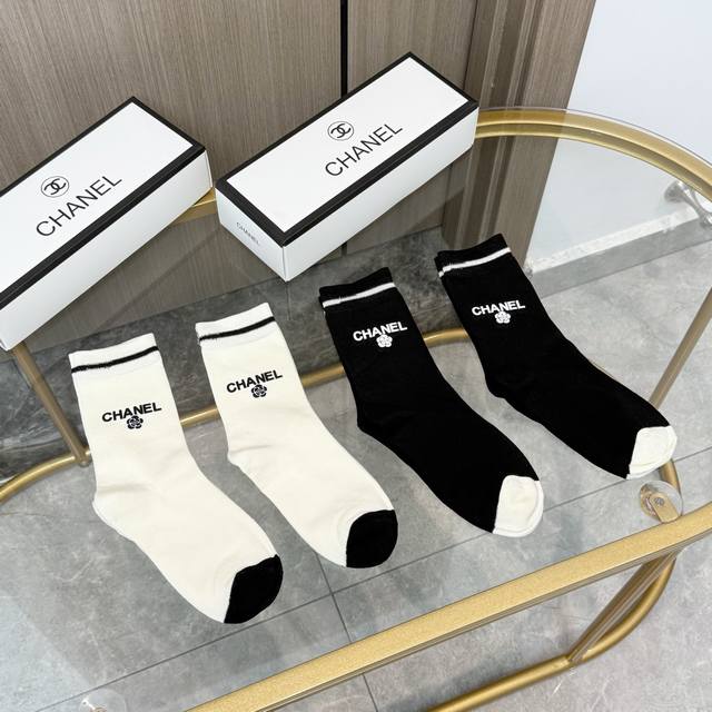 / 配包装 一盒四双 Chanel 香奈儿高品质超级爆款网红袜子小香家官网同步字母中筒袜,Ins明星网红推荐火爆至极纯棉材质,轻薄柔软透气,四季通用,欧美大牌街头必