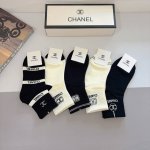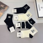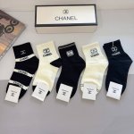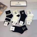 / 配包装 一盒5双 Chanel 香奈儿经典中筒袜子纯棉材质、经典双C图案Logo,专柜同步袜子大牌出街!