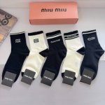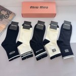 配包装 一盒5双 Miumiu 缪缪 新款中筒男款袜子,纯棉面料,潮人必备 ,经典字母 个性时尚百搭款,你值得拥有哦