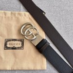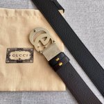Gucci 古琦 棱形扣 进口牛皮 不车线简约 热压成型工艺 双层对G款 4.0宽度