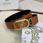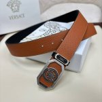 范思哲 宽4.0Cm 新款 皮革腰带,以经典 Versace 美杜莎头像装饰,皮带配有闪亮双色五金,增添造型魅力。完美时尚必备单品。